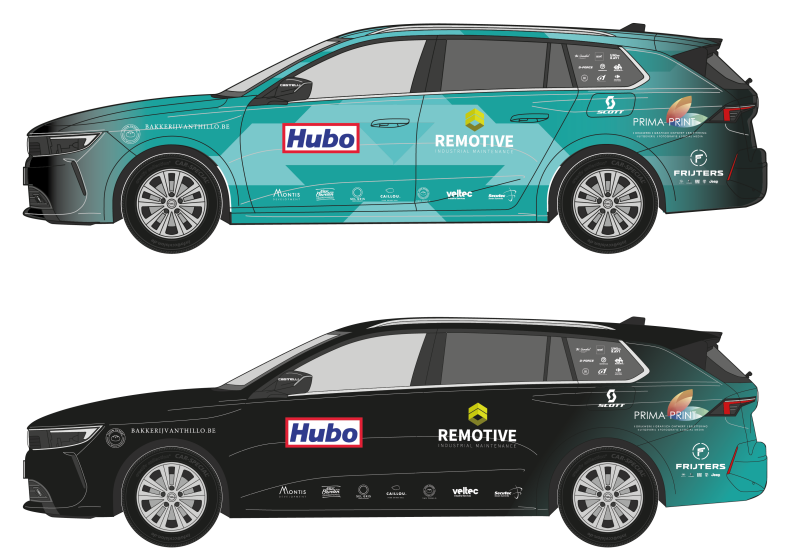 Voor het Hubo Remotive Cycling Team ontwierp GVM Design twee opvallende volgwagens op basis van de Opel Astra. De ene versie kreeg een frisse, sportieve turquoise look met dynamische accenten, terwijl de andere uitblinkt in een strakke en elegante zwarte uitvoering. Beide wagens combineren een sterke visuele stijl met duidelijke sponsorvermelding en versterken zo de professionele uitstraling van het team op en naast het parcours.